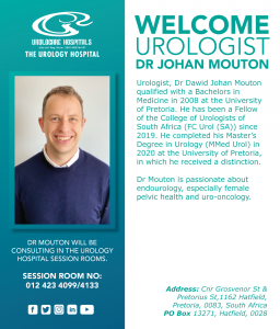 The Urology Hospital hosted an online CPD on the 2nd of July 2020. Our three speakers and their topics were: Dr J Mouton (Female Incontinence),
