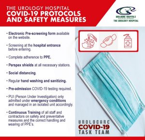 Statement from The Urology Hospital, Pretoria, on Covid-19 status – 20 June 2020 Operating theatres have re-opened at The Urology Hospital, Pretoria, following sanitisation and